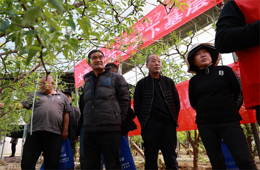 在当地设施冬枣大棚内,宋民斗老师结合三月份气候多变的特点,以实地果树管理为依托,分树体管理、肥水管理、温湿度控制三个方面,系统全面地讲解了枣吊伸长期的管理要点和技术手段,针对种植户提出的地膜铺设、枣吊过长等各类问题,宋老师以目标为导向,从理论依据到具体措施,引导种植户们加强管理、科学种植。
