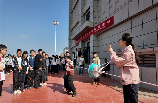 与此同时,渭南市科技馆带来的科学实验秀成为整场活动的“高光时刻”。科技馆辅导员们以趣味横生的形式,演示了如“火焰掌”、“静电飞花”等一系列蕴含深刻科学原理的实验。现象震撼,讲解幽默,互动热烈,学生们在惊呼与欢笑中,直观理解了物态变化、伯努利原理、静电现象等科学知识。这一刻,科学不再是书本上遥远的公式和定理,而是充满魔力与惊喜的探索旅程,它变得可触、可感、有趣而迷人,就在这秋日的校园里,生动地绽放着。